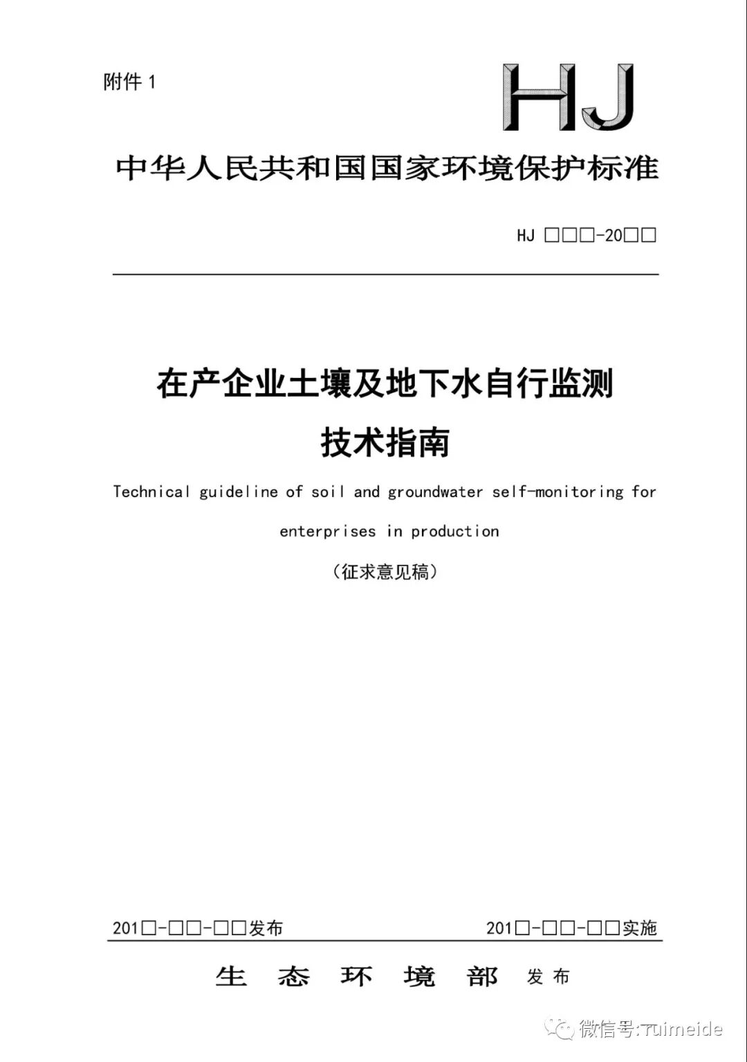 为贯彻《中华人民共和国环境保护法》,落实《土壤污染防治行动计划》,推动落实企业环境保护主体责任,提高环境管理水平,规范生态环境监测工作,我部决定制定《在产企业土壤及地下水自行监测技术指南》国家环境保护标准。目前,标准编制单位已编制完成标准的征求意见稿